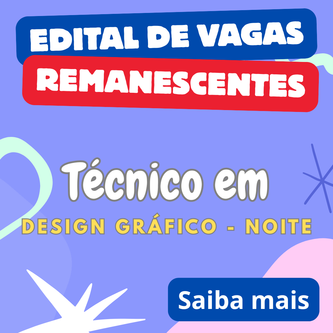 VAGAS REMANESCENTES PARA 2º MÓDULO DO TÉCNICO EM DESIGN GRÁFICO – NOITEHORÁRIO DAS AULAS das 19h00 às 22h55. Abaixo o edital completo: