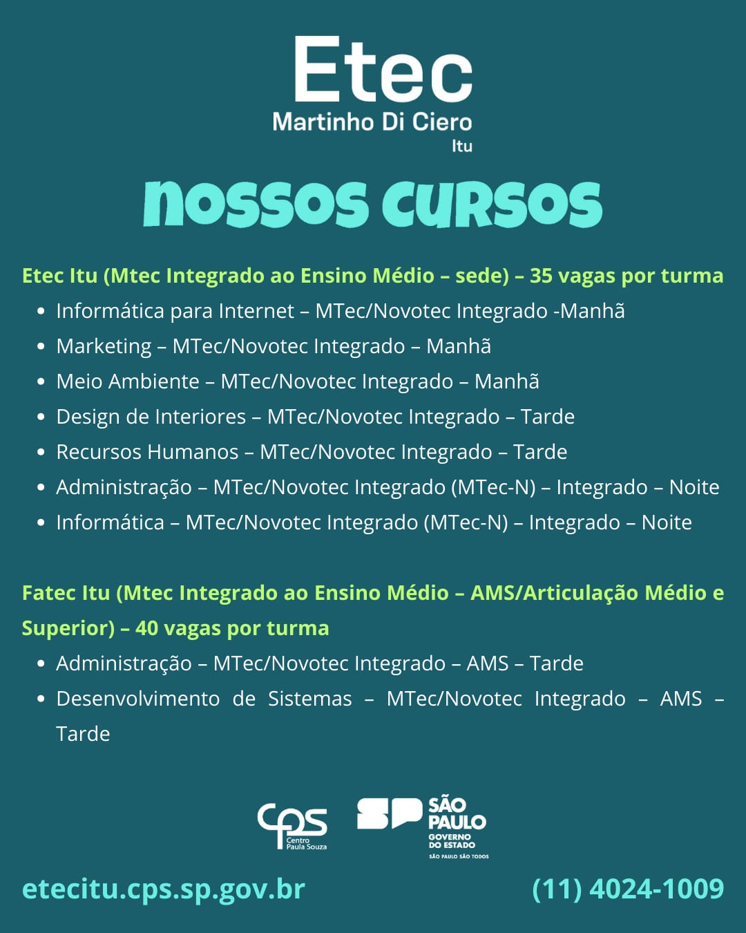 Etec Itu (Mtec Integrado ao Ensino Médio – sede) – 35 vagas por turma